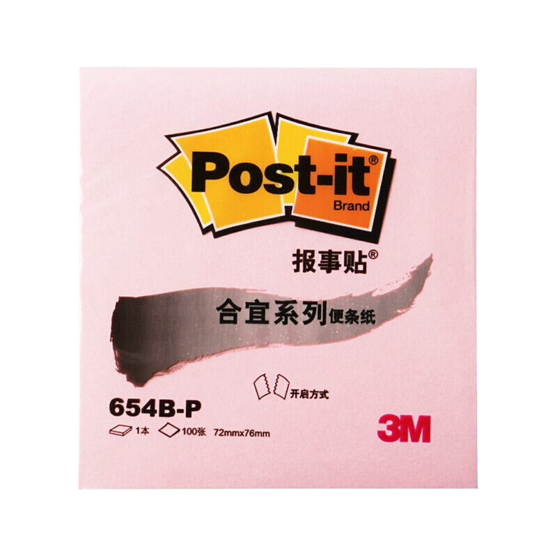 3M 报事贴 便条纸/便利贴/便签纸/便签本 合宜系列654BP-PI(粉色)