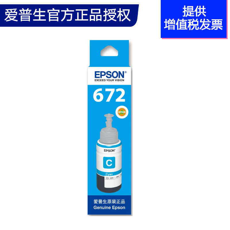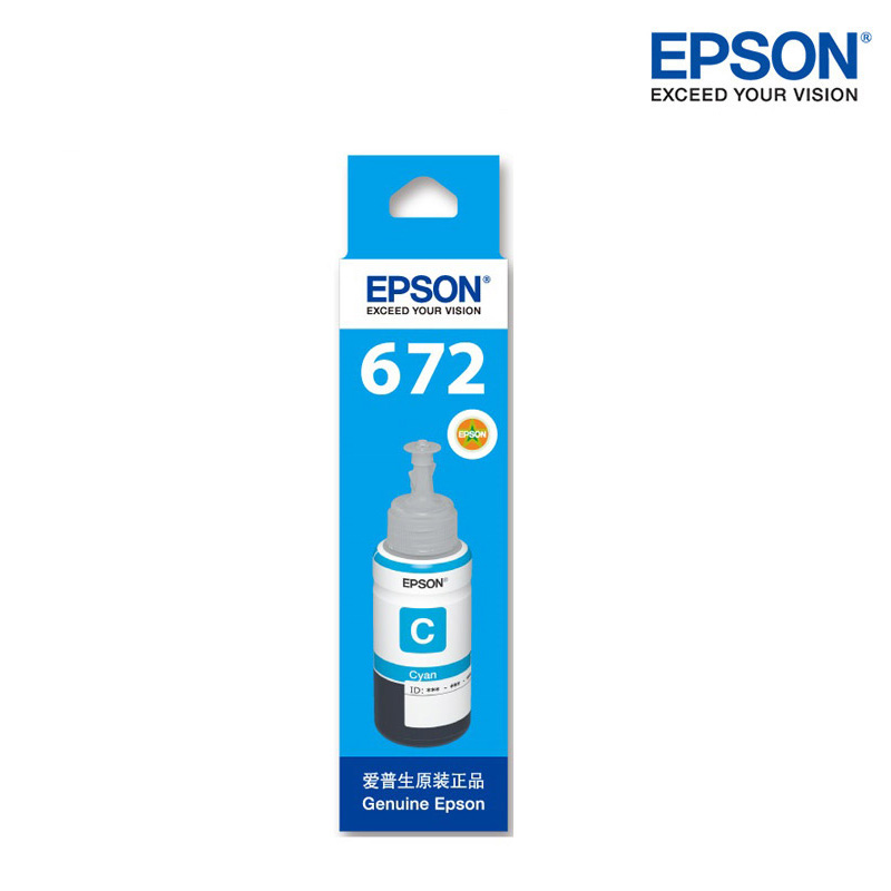 • 爱普生墨水T672系列 L380 L385 L485 L1300 打印机 T6722青色(5%覆盖率约打印6500页)