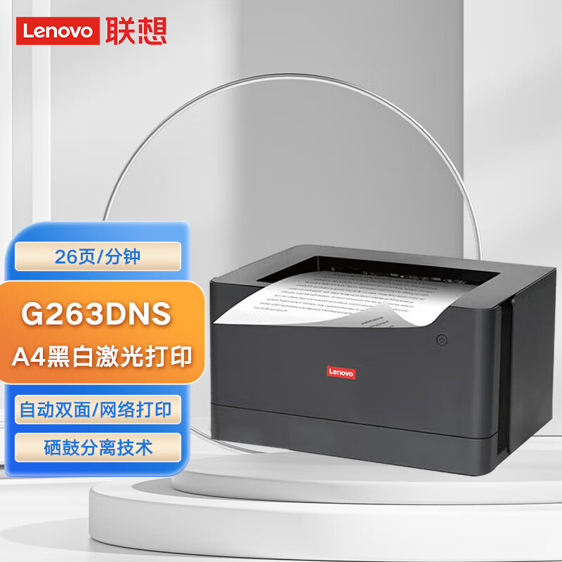 • 联想(Lenovo)G263DNS A4黑白激光打印机 自动双面/网络打印 支持麒麟/统信/中科方德/Windows(国产化)