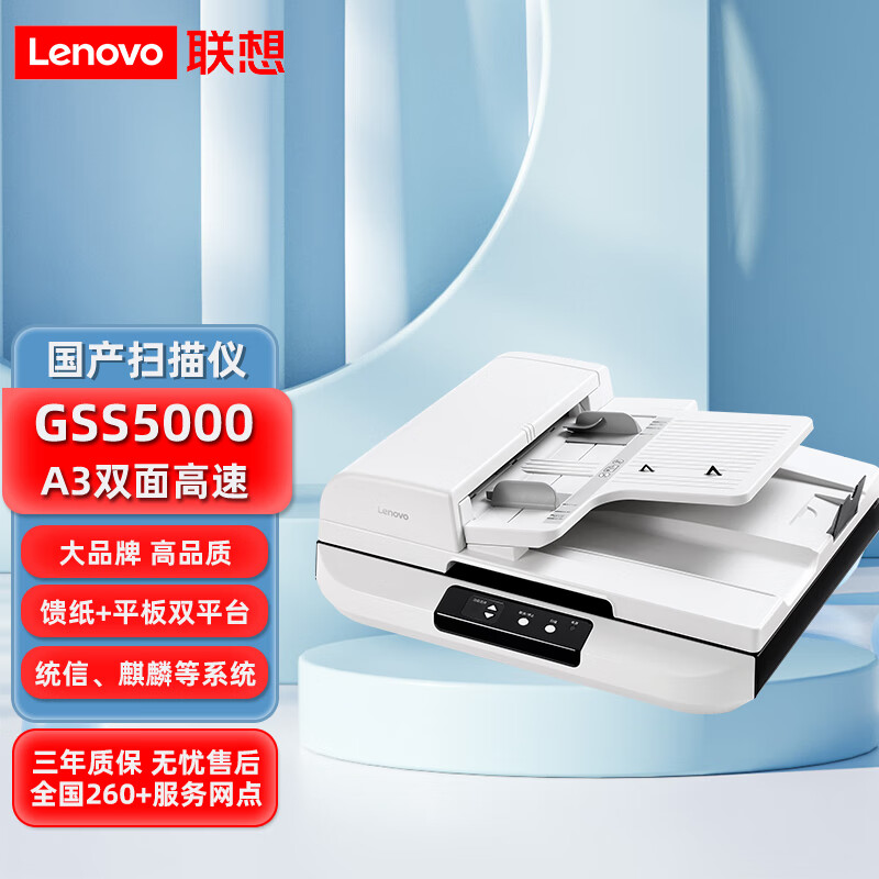 联想(Lenovo) 扫描仪GSS5000【国产化】A3幅面扫描仪支持国产系统及Windows系统 平板+ADF高清双面自动扫描