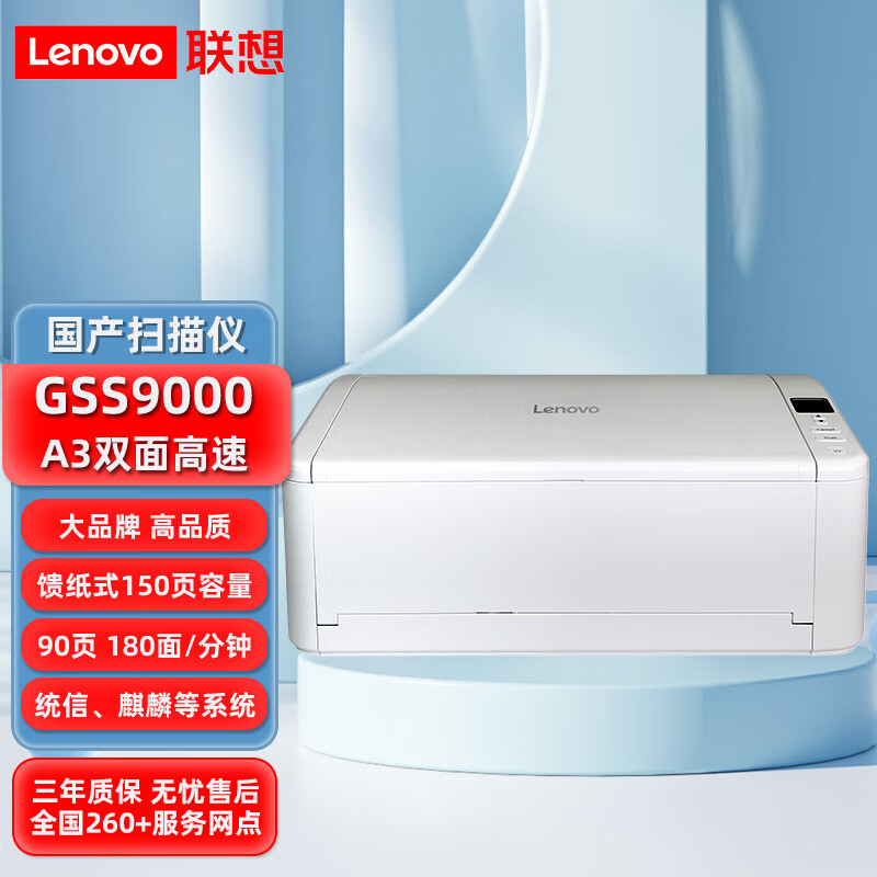 - 联想(Lenovo)扫描仪GSS9000 【国产化】A3/A4幅面高速馈纸式高清扫描仪(90ppm/180ipm/自动双面扫描)