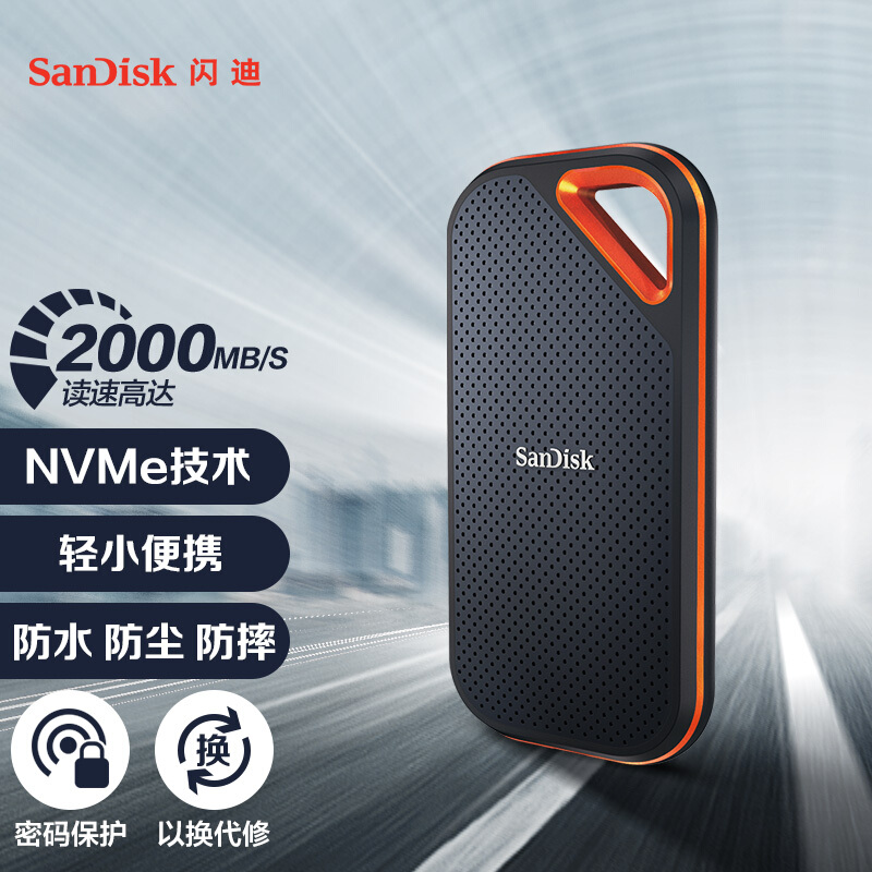 - 闪迪 2TB Nvme移动固态硬盘(PSSD)E81至尊超极速Pro升级版 高速传输2000MB/秒 IP55等级三防保护