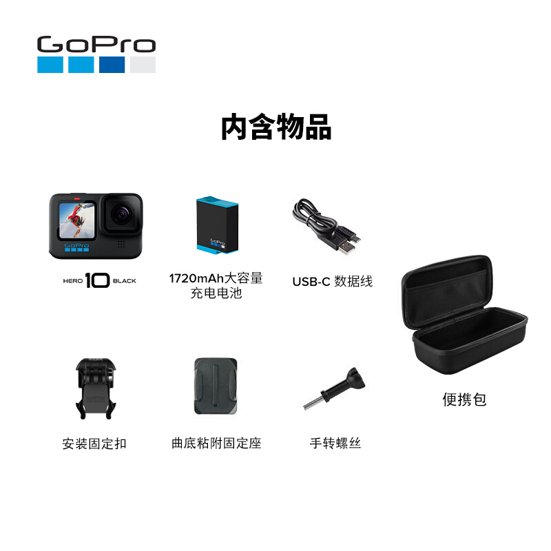 • GoPro HERO10 Black 运动相机 户外摩托骑行水下防水记录防抖 照相机 Vlog数码运动摄像机