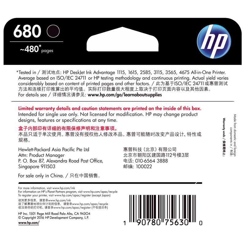 - 惠普F6V26AA 680彩色墨盒(适用HP DeskJet 5078 5088 2138 3638 3636 3838 3777 3778 4678 4538)