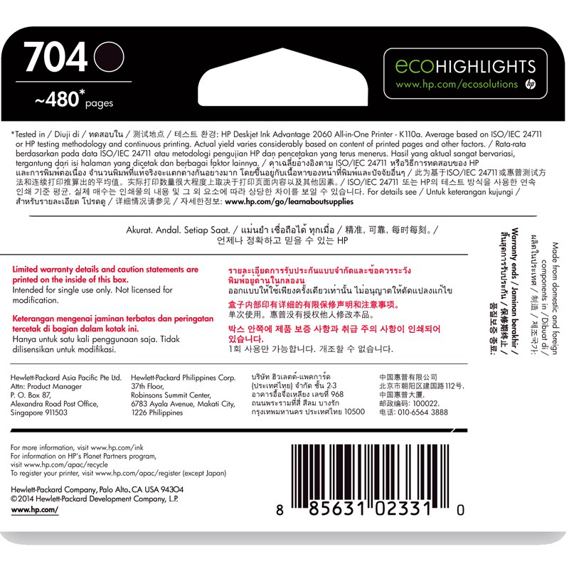 - 惠普CN692AA 704黑色墨盒 hp Deskjet 2010 2060 K010 K110打印机墨盒 黑色(480页)