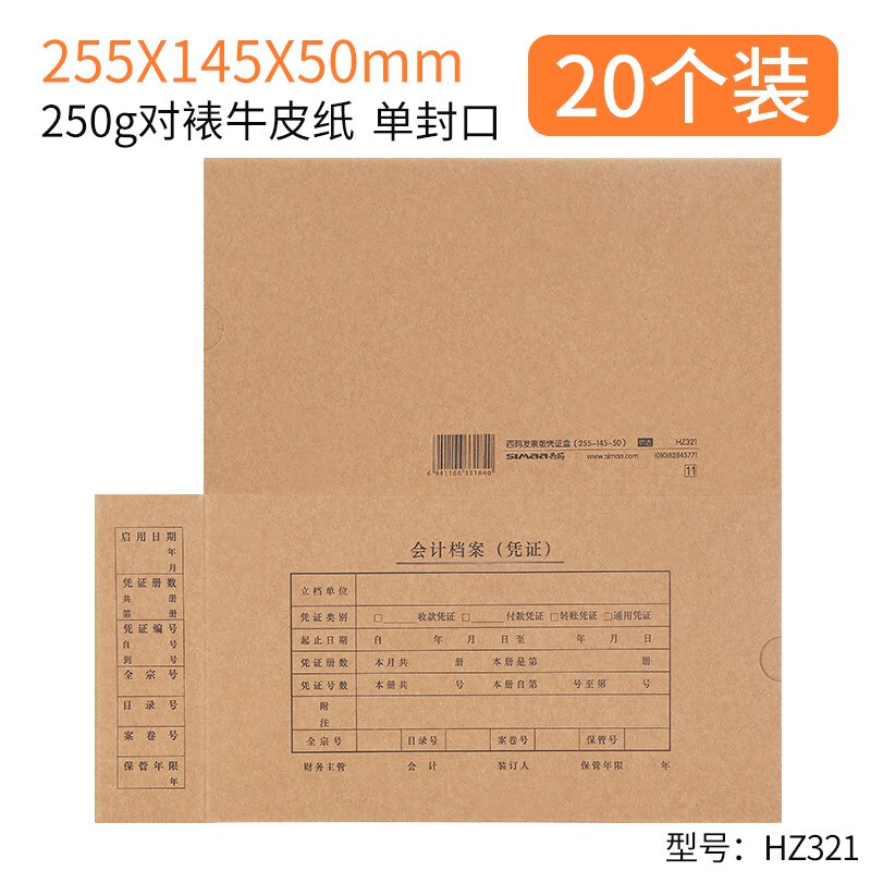 西玛(SIMAA)凭证封面100套 记账凭证封面包角 发票版会计凭证装订封皮243*142mm 增票规格凭证盒-单封口20个装