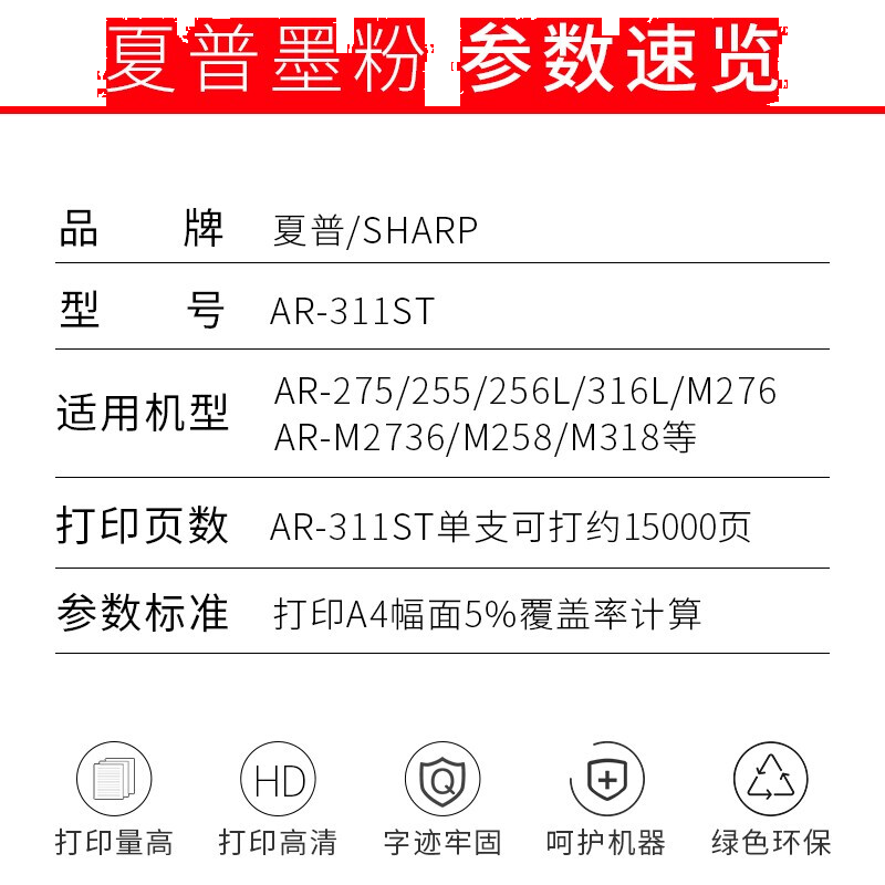 • 夏普AR-311ST-C墨粉AR275/256L/316L/M276/M258/M318打印机碳粉