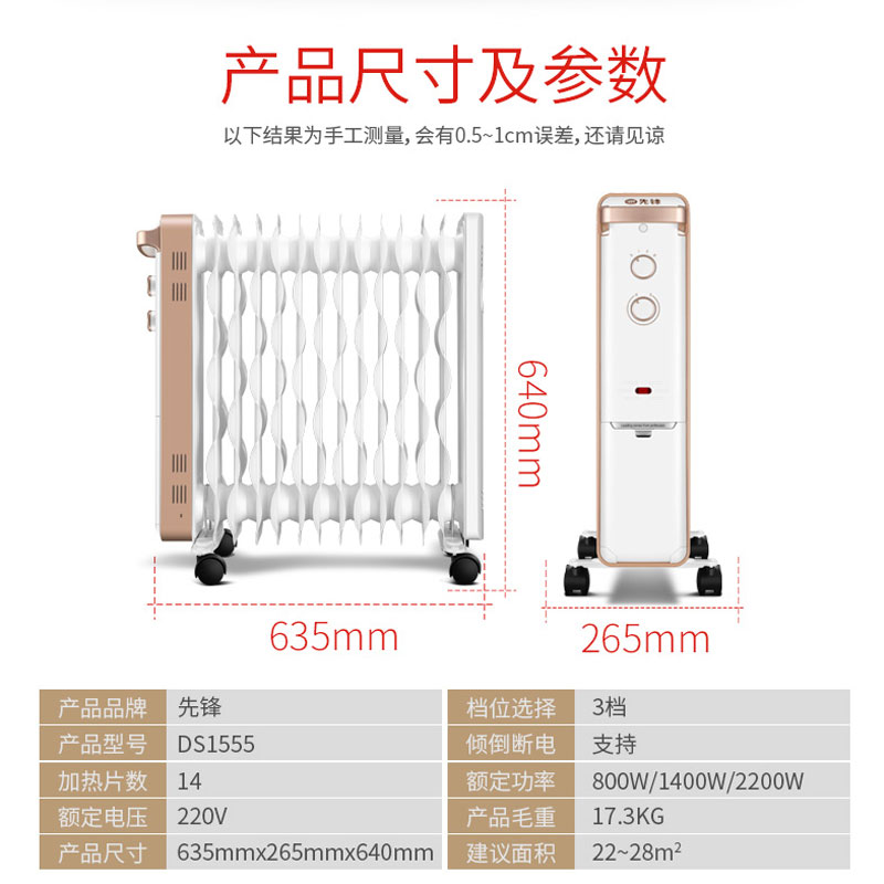 先锋 (Singfun)取暖器 电热油汀家用电暖气片热浪油汀节能电暖器加热器 DS1555 14片热浪