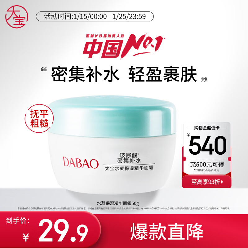 • 大宝水凝保湿精华霜50g乳液面霜补水保湿修护肌肤面部护肤品