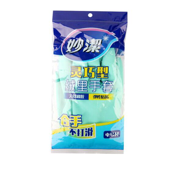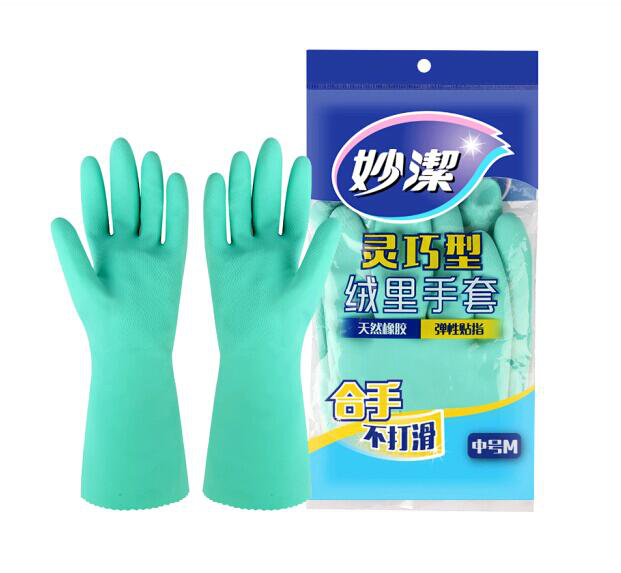 • 妙洁(MIAOJIE) 妙洁家务清洁手套绒里灵巧型厨房洗碗洗衣手套防水橡胶家务手套 中号(M码)