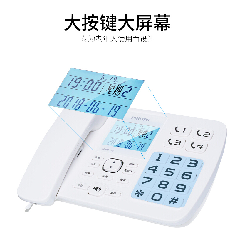 • 飞利浦(PHILIPS)CORD168 电话机座机 大屏大按键 白色
