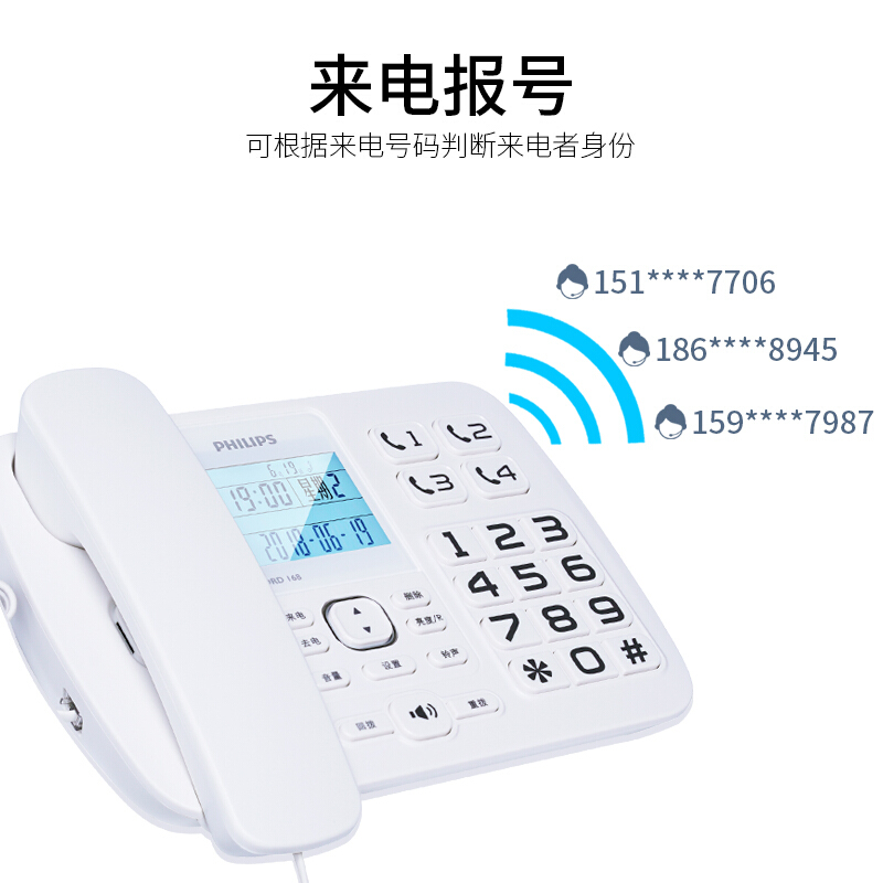 飞利浦(PHILIPS)CORD168电话机座机 固定电话 办公家用 来电报号 大屏大按键 老人机 白色