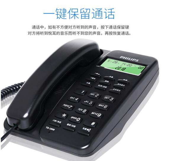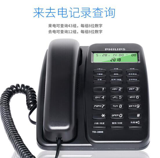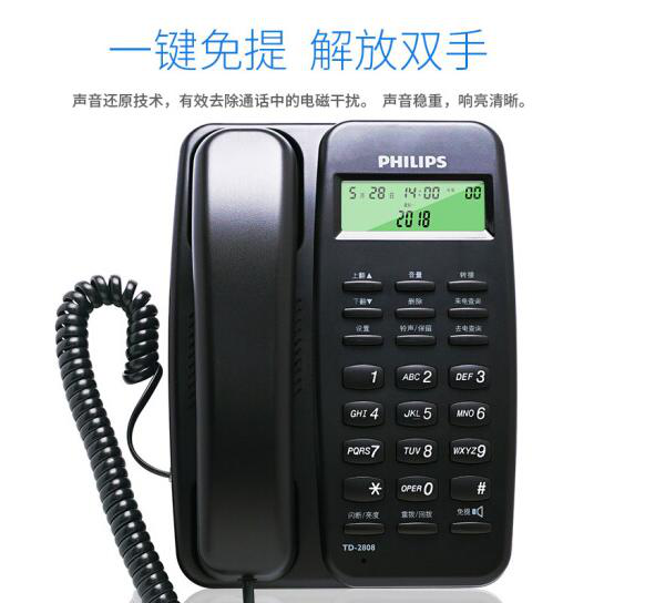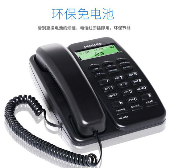 • 飞利浦(PHILIPS)电话机座机 固定电话 办公家用 免电池设计 来电显示 TD-2808 (黑色)