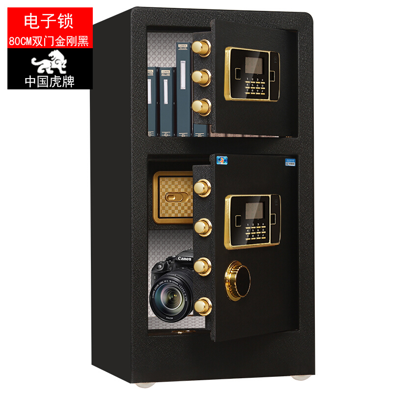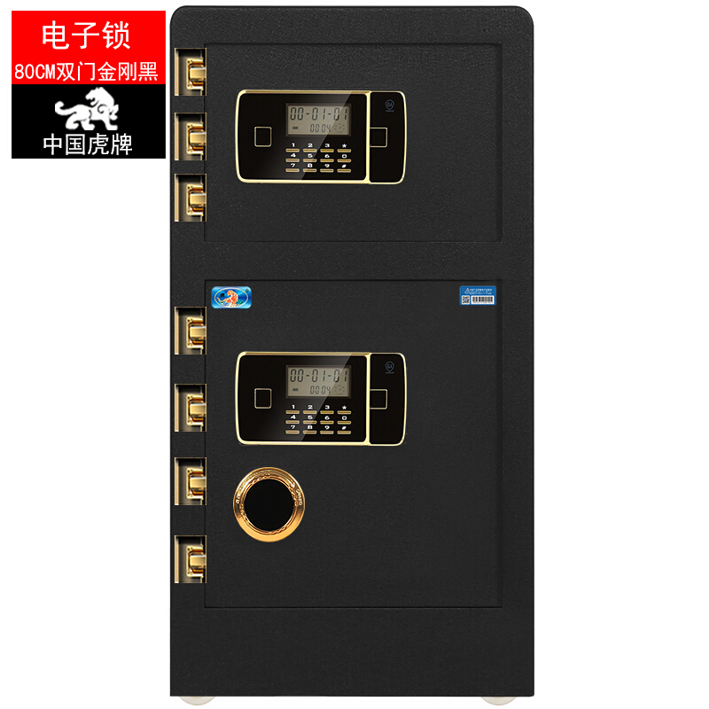 虎牌 保险柜办公家用双门电子密码保险箱 全钢指纹保管柜BGX-M/D-80S 电子密码双开门80#保险柜-金刚黑
