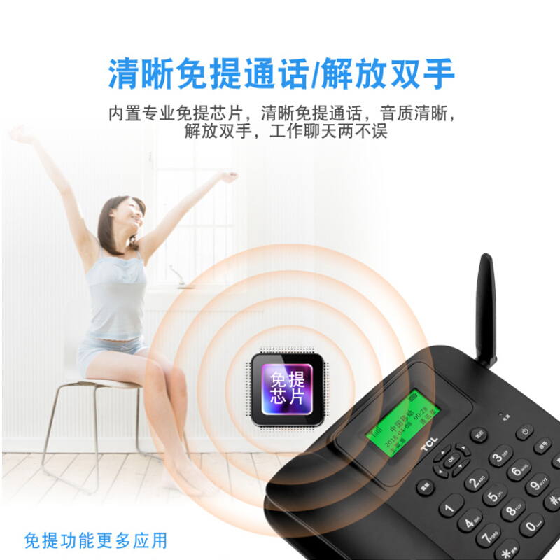 • TCL 插卡电话机座机LT100 办公固定电话 支持移动联通4G卡 (黑)