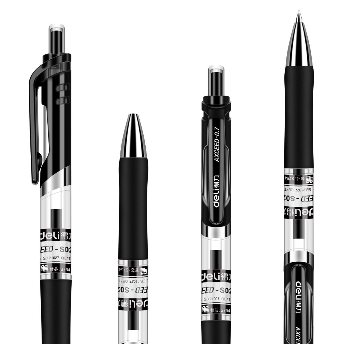 • 得力 按动式中性笔 S02 0.7mm 子弹头 黑色 (单位:支)