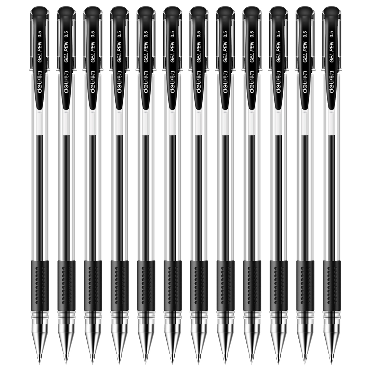 • 得力(deli)0.5mm经典办公中性笔签字笔 子弹头黑色12支/盒6600