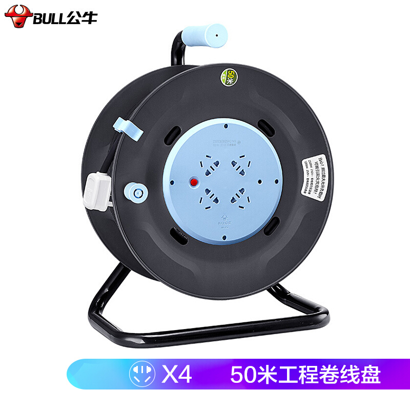公牛(BULL)GN-804 4位50米工程接线盘/新升级过热保护电缆卷盘插座/插排 工程专用
