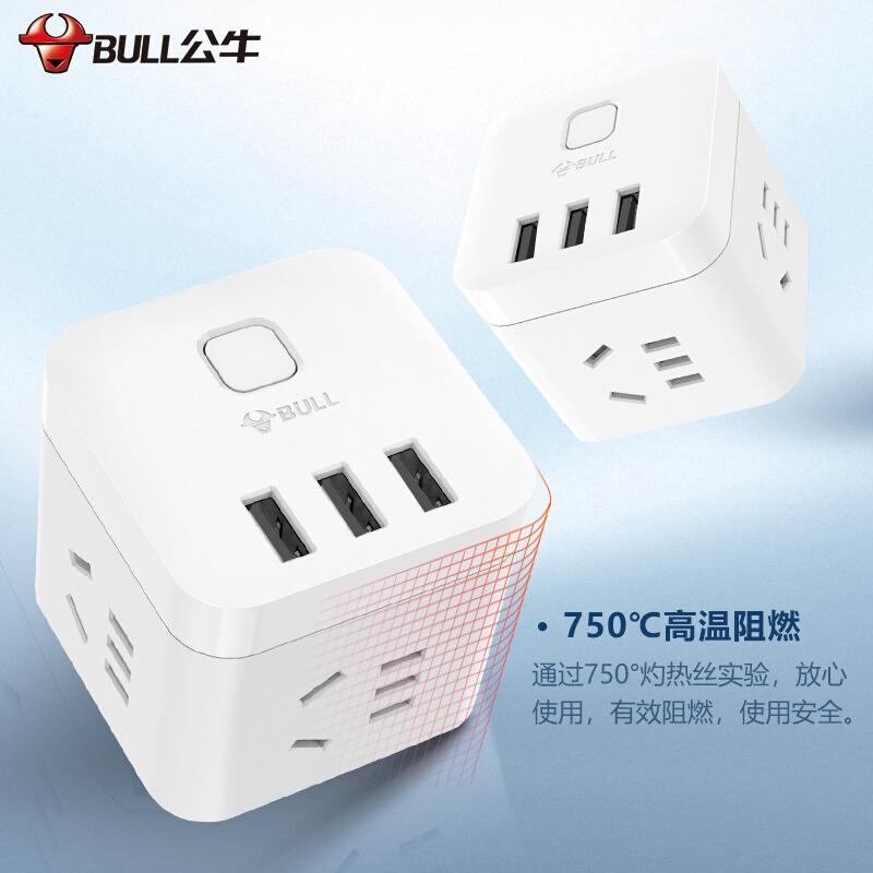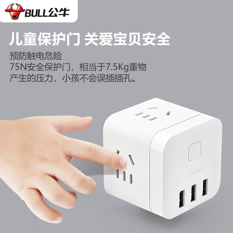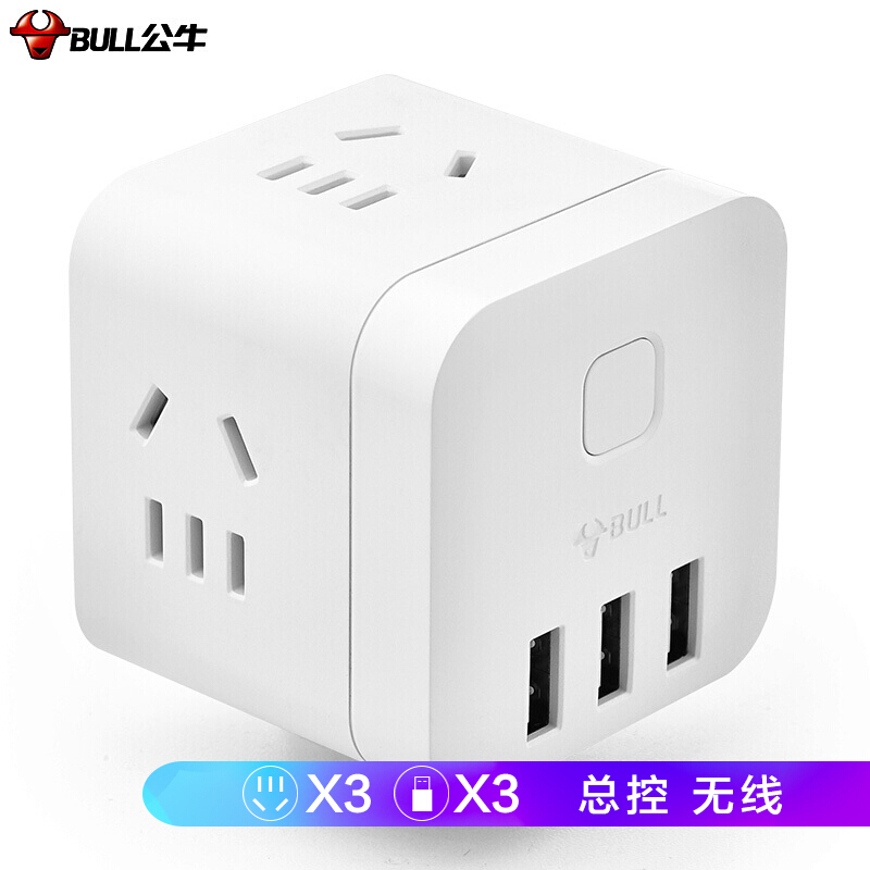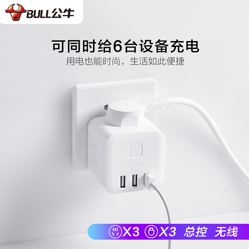 公牛(BULL) 魔方智能USB插座 插线板/插排/排插/接线板/拖线板 GN-U303UW 白色无线魔方USB插座