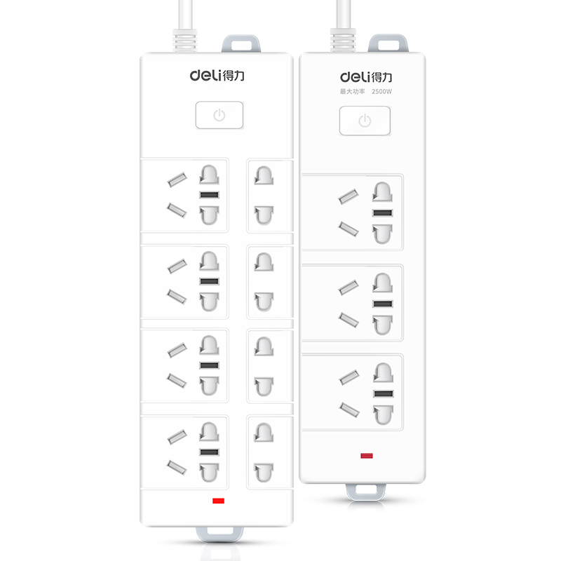 • 得力(deli)27001 新国标 插座套装插排8位2米+3位2米组合套装