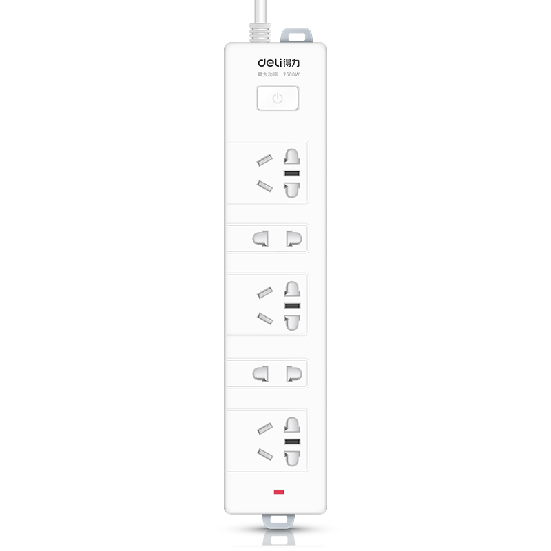 得力(deli)18252 新国标5位2米 总控开关插座