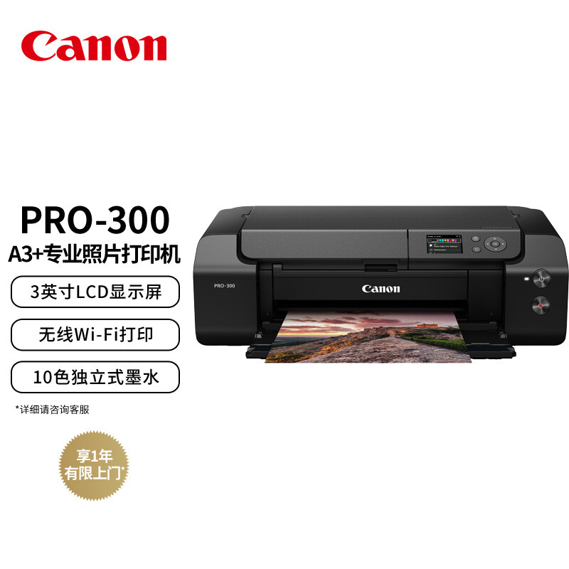 佳能(Canon) PRO-300 A3+幅面无线彩色喷墨专业照片打印机(10色独立式墨水系统)