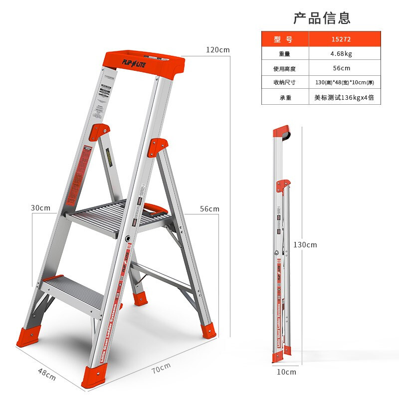 • 雷都捷特(LittleGiant)小巨人梯子家用人字梯加厚铝合金多功能折叠室内便携扶梯 二步15272(使用高度56cm)
