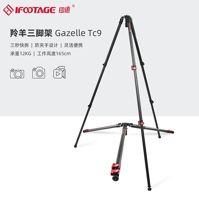 印迹(iFootage)羚羊TC7 TC9三脚架(无中置) 碳纤维便携专业摄影摄像单反5D TC9+K7 黑色