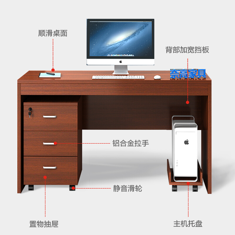 • 奈高办公桌电脑桌120*60*75cm简约现代职员老板桌单人办公位写字台1.2米柚木色