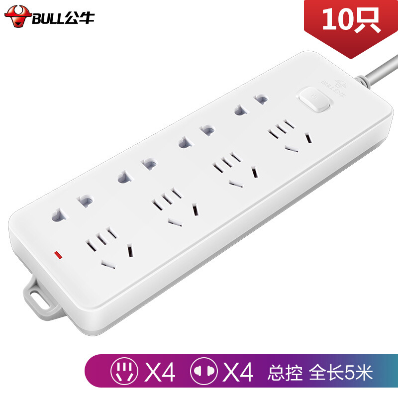 公牛(BULL)GN-403 插线板 8位总控 1.8m