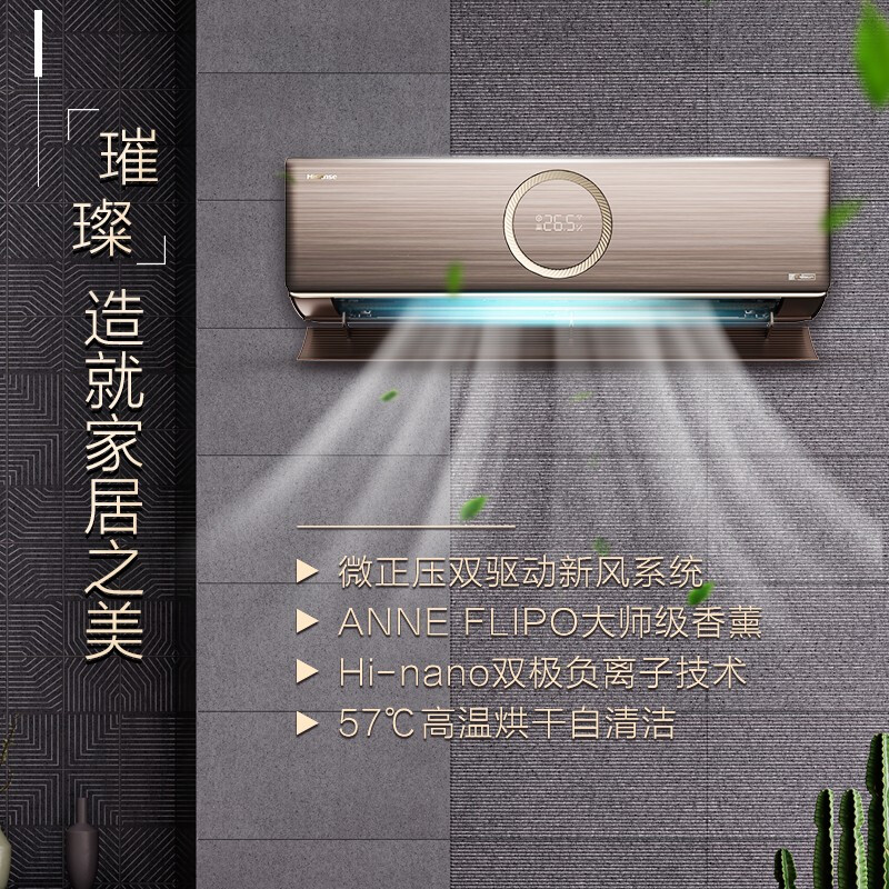 - 海信(Hisense) 1.5匹 璀璨KFR-35GW/C100H-X1 新风系统 50m³/h大新风量 新一级负离子