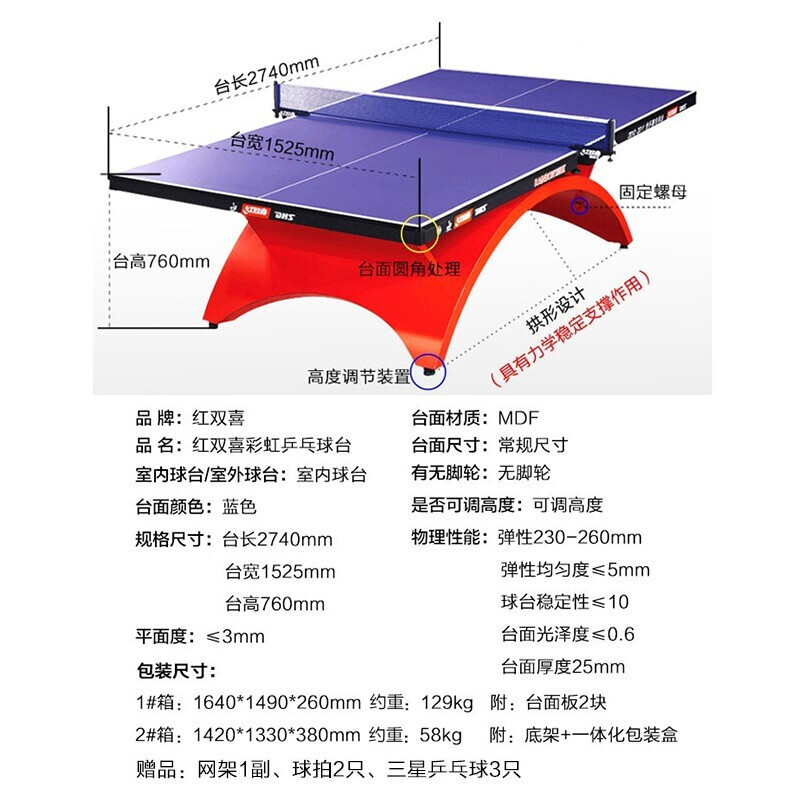 红双喜(DHS)TCH-彩虹乒乓球桌专业比赛球台(附高档网架、乒拍、乒球)
