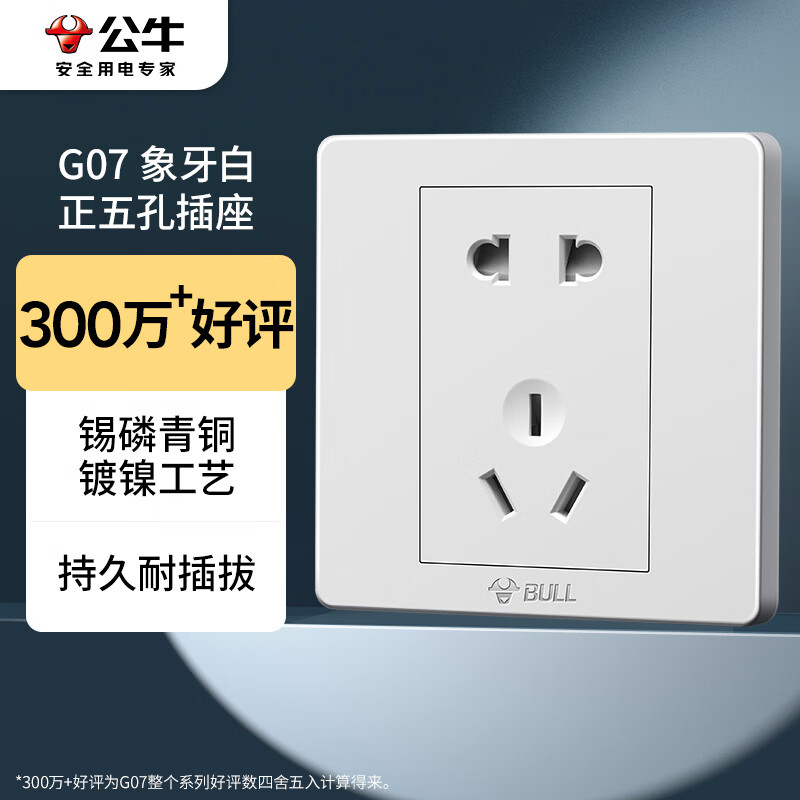 公牛(BULL) 墙壁插座 G07系列 10A五孔插座 86型面板G07Z223 白色 暗装