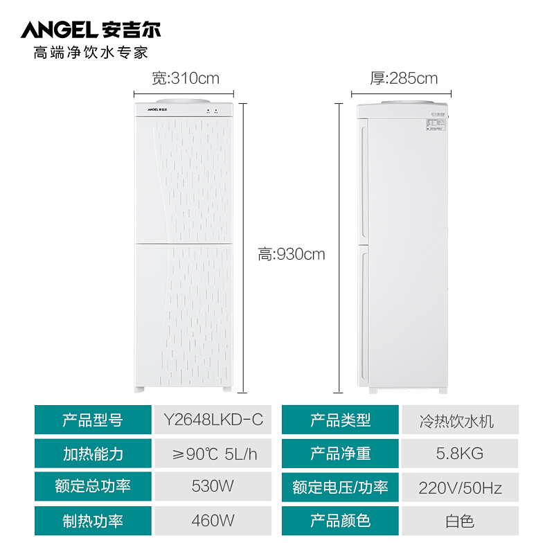 安吉尔(Angel)饮水机家用立式双门 安全内胆加热 温热型饮水机 Y2648LK-C