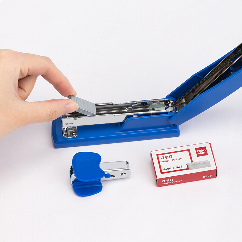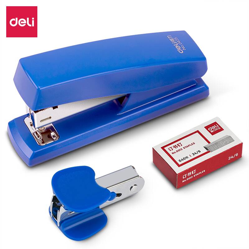 得力(deli)12#办公订书机3件套(订书器+订书钉+起钉器) 办公用品 蓝色0354
