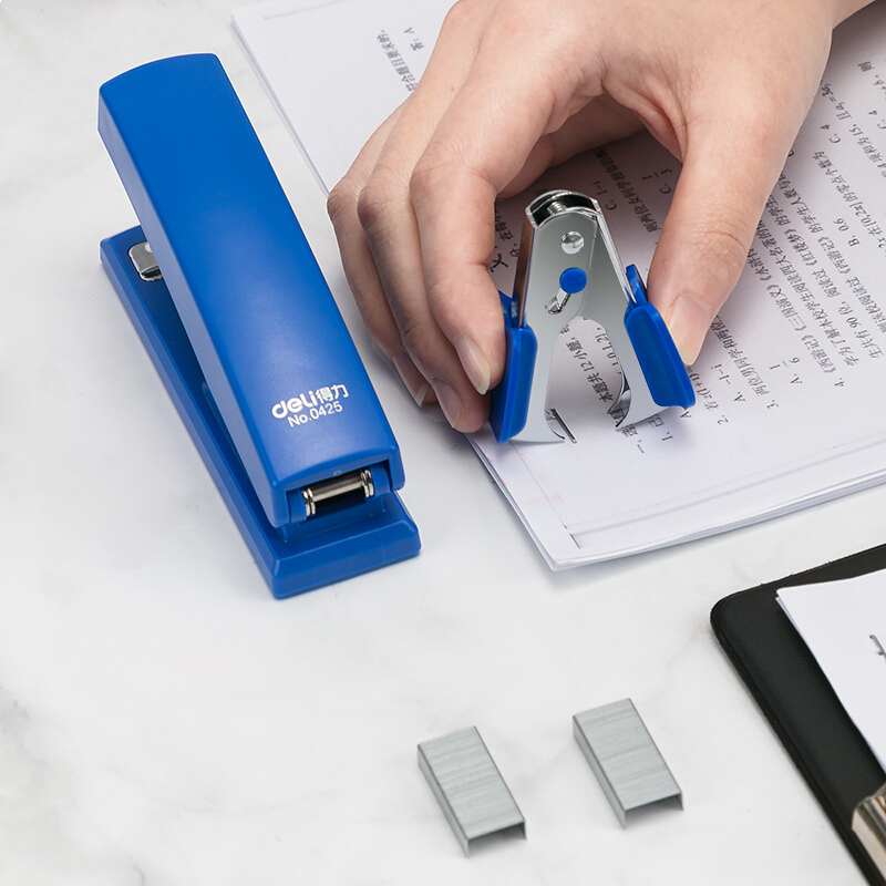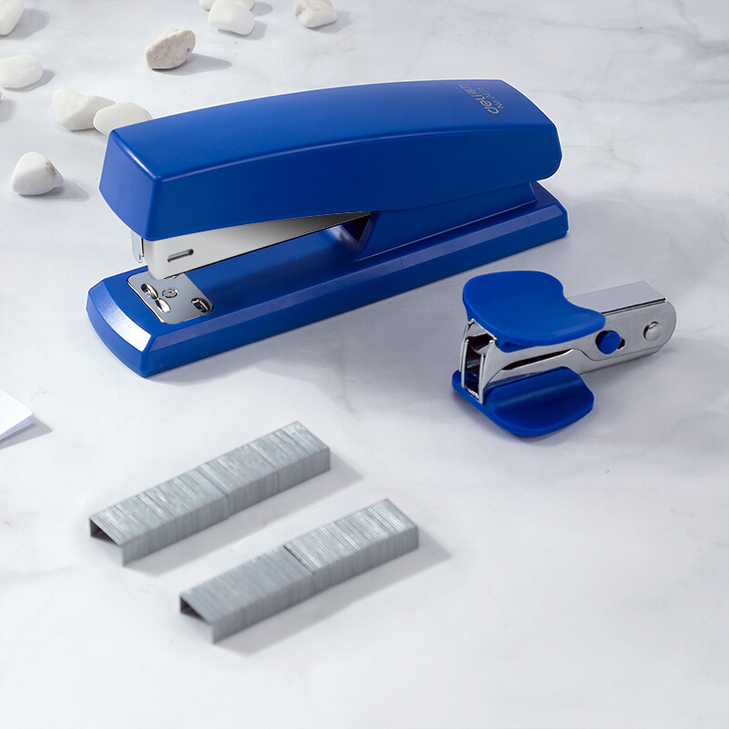 • 得力0354 12#办公订书机 3件套(订书器+订书钉+起钉器) 办公用品 蓝色