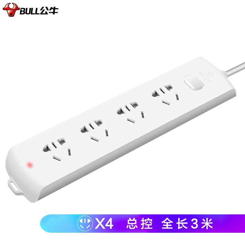 公牛(BULL)新国标插座/插线板/插排/排插/接线板/拖线板 GN-B2040 4位总控全长3米