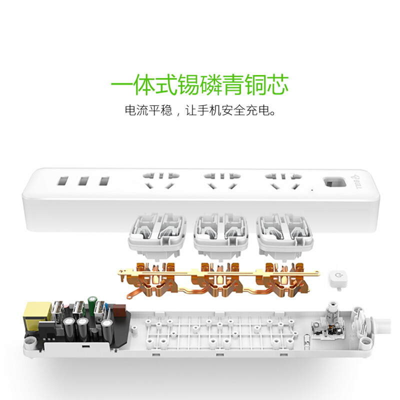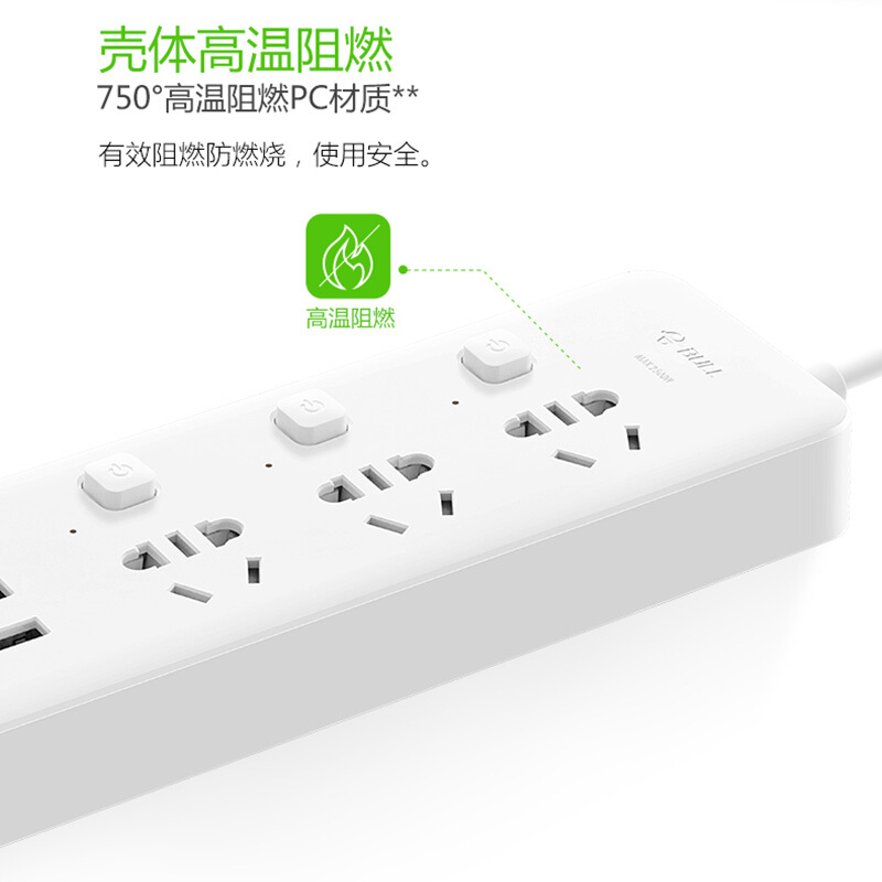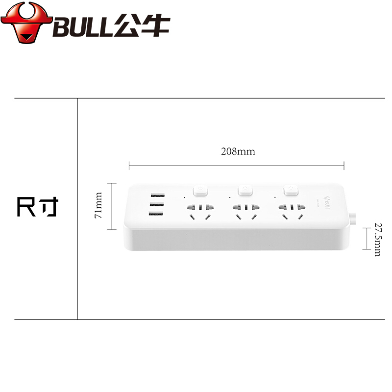 公牛(BULL) 插座/智能USB插座/插排/插线板/排插/接线板/拖线板 GN-B3033 小白USB插座分控全长1.8米