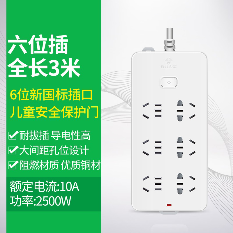 公牛插座家用插排插线板接线板无线1.8/3/5/10米拖线板电源转换器拖线板带线 216-3米