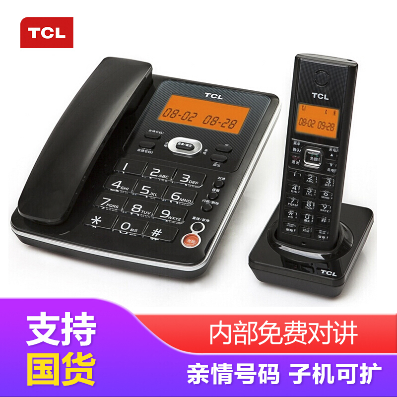 TCL 无绳电话机D60 无线座机套装一拖一(黑色)