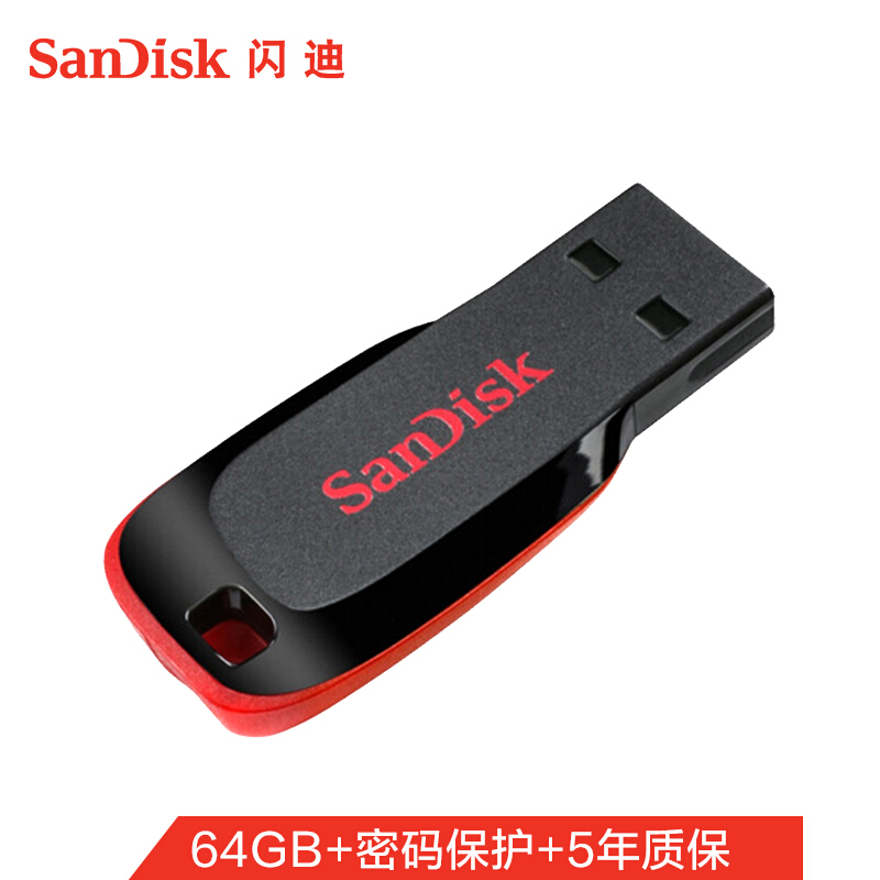• 闪迪(SanDisk)64GB USB2.0 U盘 CZ50酷刃 黑红色 时尚设计 安全加密软件
