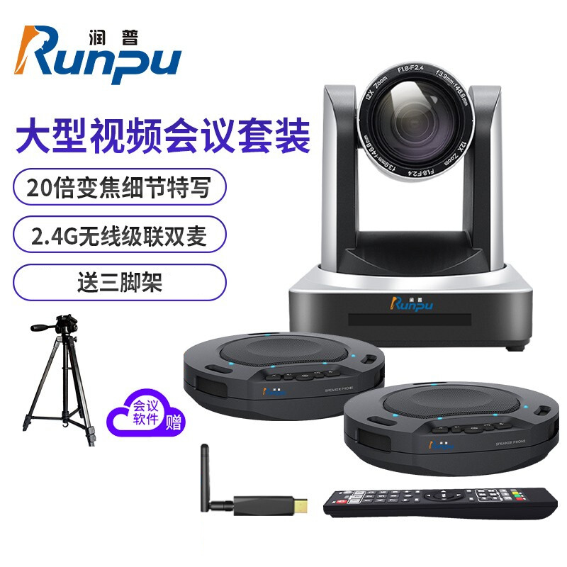 • 润普RP-W60大型视频会议室解决方案 适用60-80平米(会议摄像头RP-HU20+无线级联全向麦克风RP-N60W)