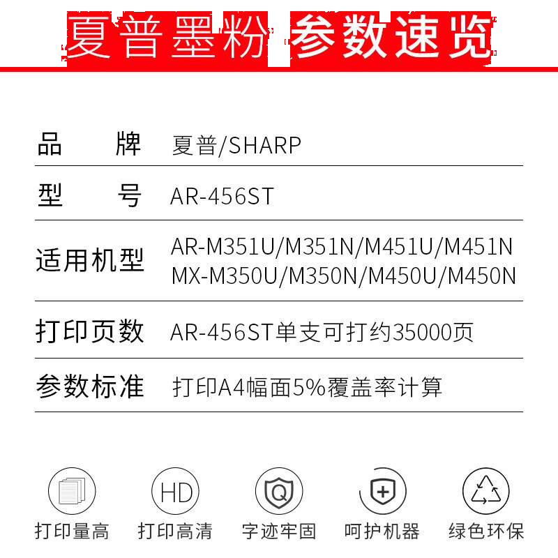 • 夏普AR-456ST-C 黑色墨粉 适用于AR-M351/451U/N MX-M350/450U/N碳粉