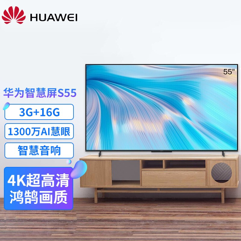 • 华为智慧屏电视S55 55英寸平板超薄全面屏电视4K高清智能液晶电视机 华为智慧屏S55 3+16GB