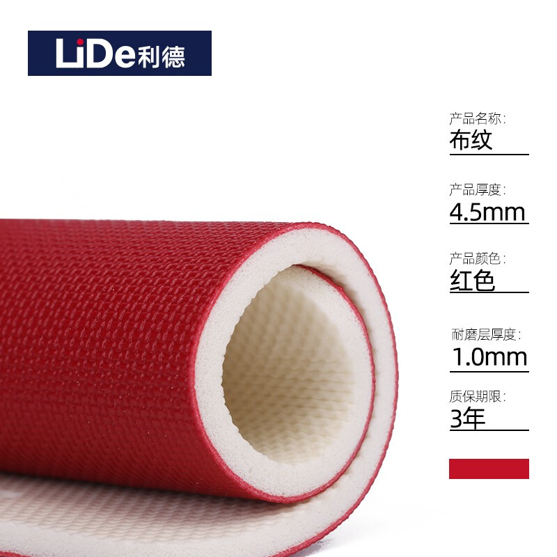 • 利德室内乒乓球地胶专用PVC运动地板弹性球场馆地胶 红布纹4.5mm