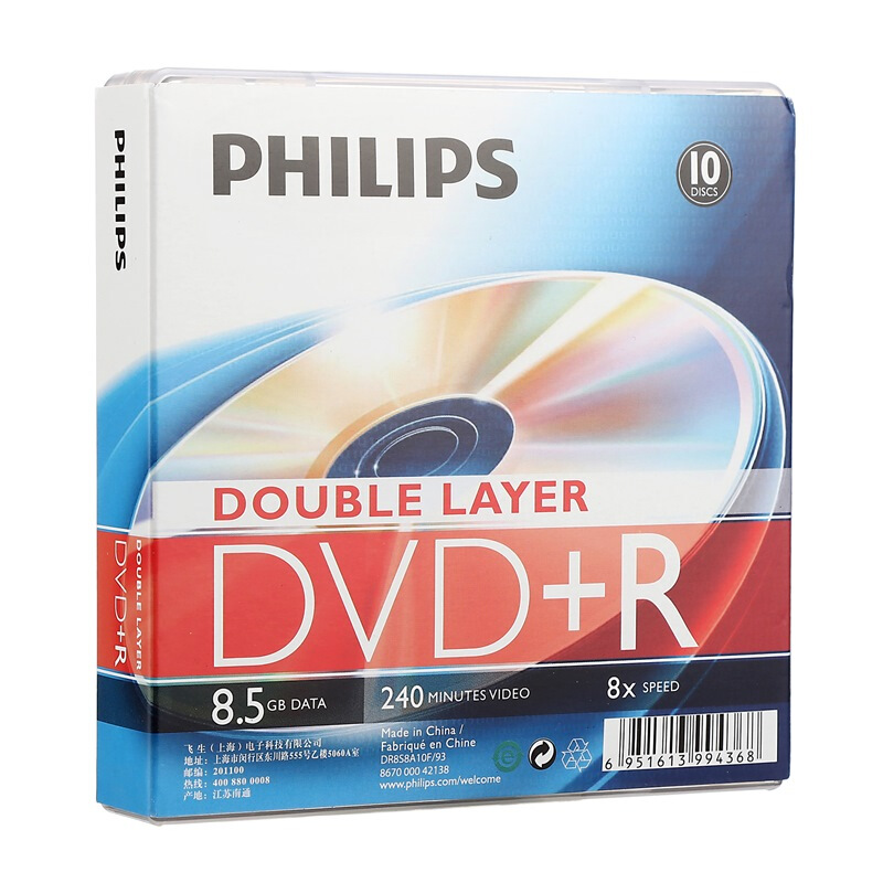 飞利浦(PHILIPS)DVD+R DL空白光盘/刻录盘 8速8.5GB 单面双层 10片盒装