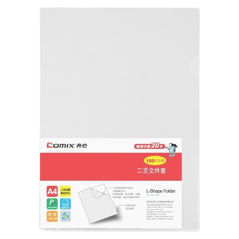 齐心(COMIX) 二页文件夹套L形单片 两页塑料透明文件袋 办公用品 E310-1两页袋(100个装)