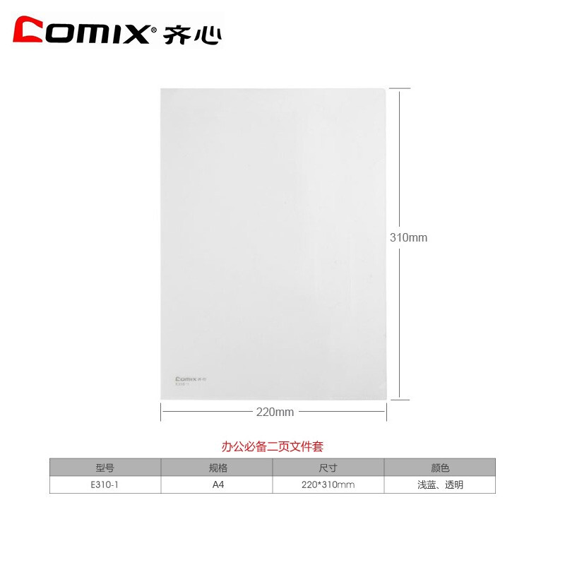 • 齐心(COMIX) 二页文件夹套L形单片 两页塑料透明文件袋 办公用品 E310-1两页袋(100个装)