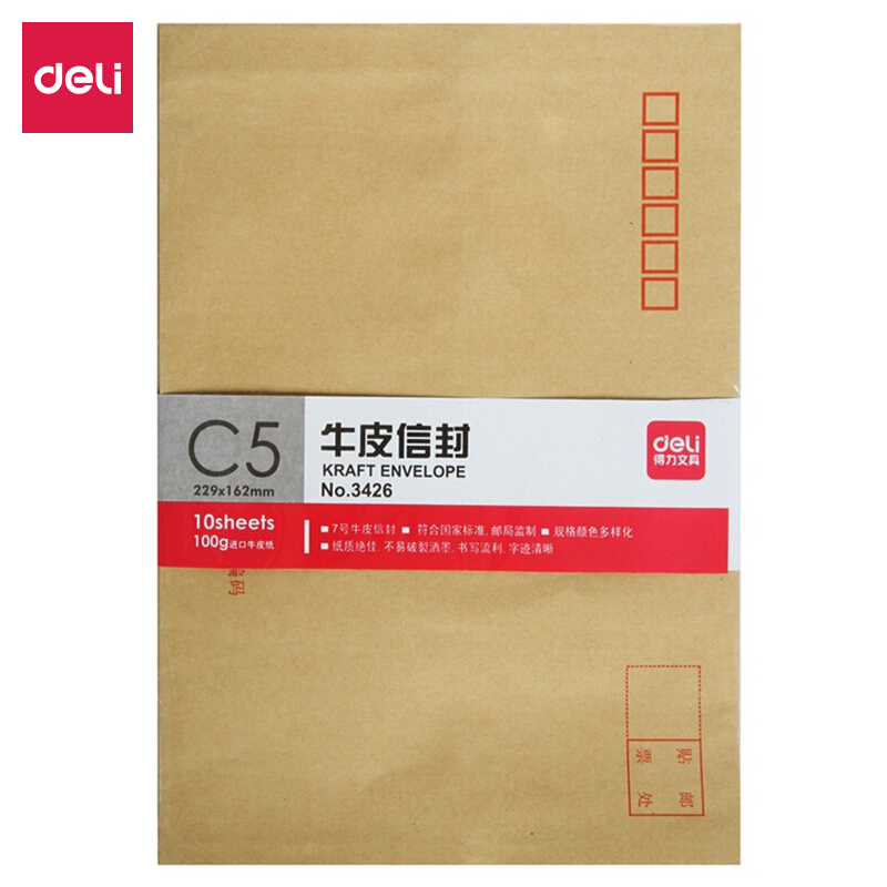 得力(deli)10张7号牛皮纸信封 邮局标准信封229*162mm3426-10