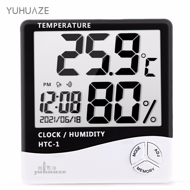 • 雨花泽(Yuhuaze)电子温湿度计带时间闹钟 办公家用室内外温度计 测温计 湿度计